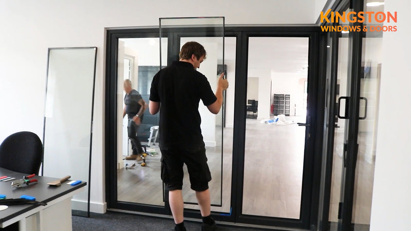 Learn to toe & heel a bi-fold door: adjust top pivot and bottom pivot for smooth operation. Watch and follow along.